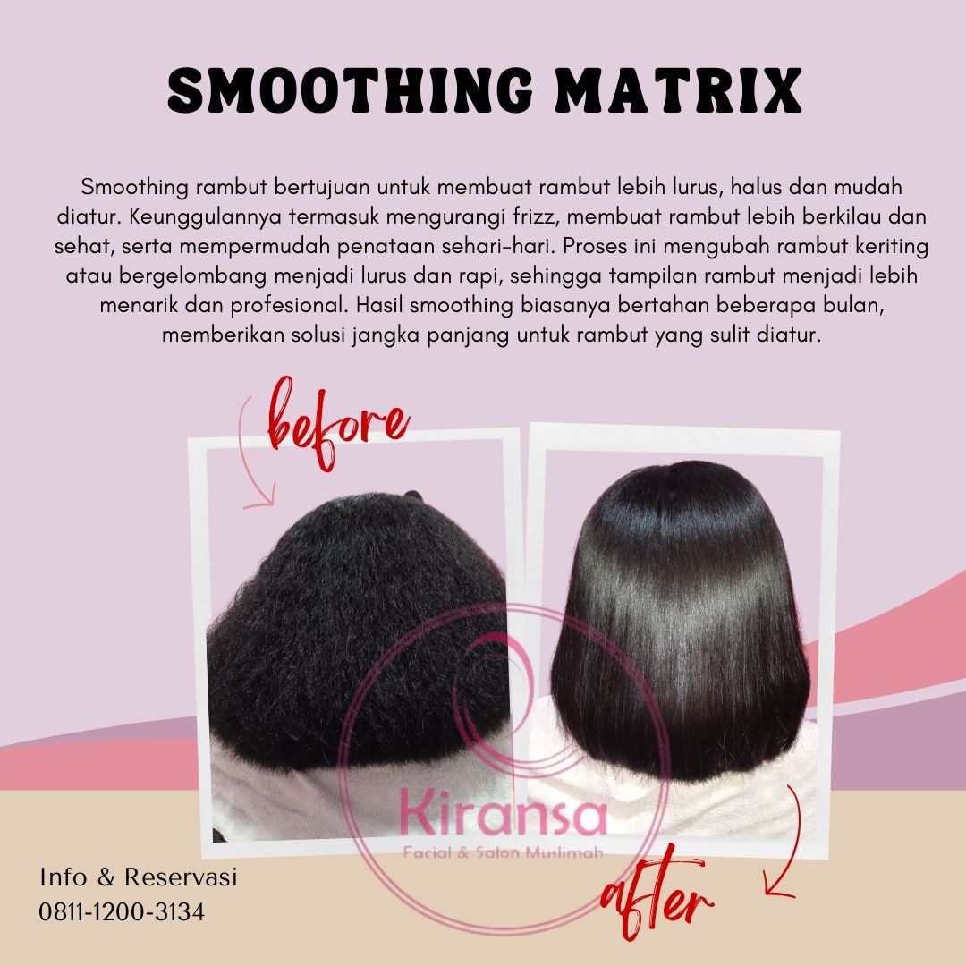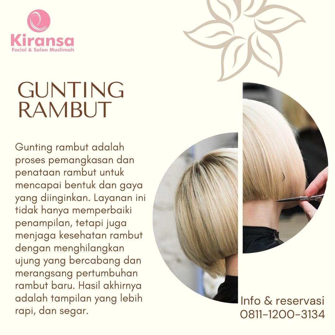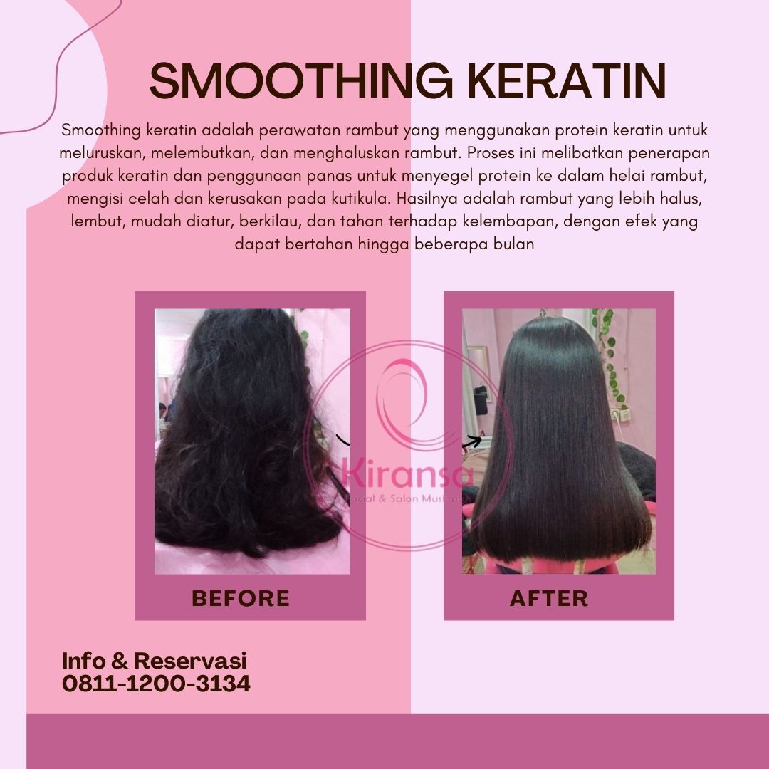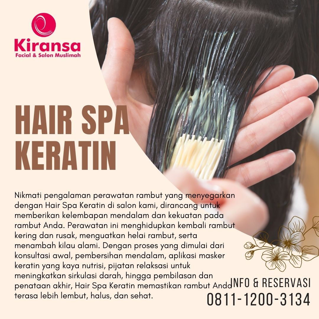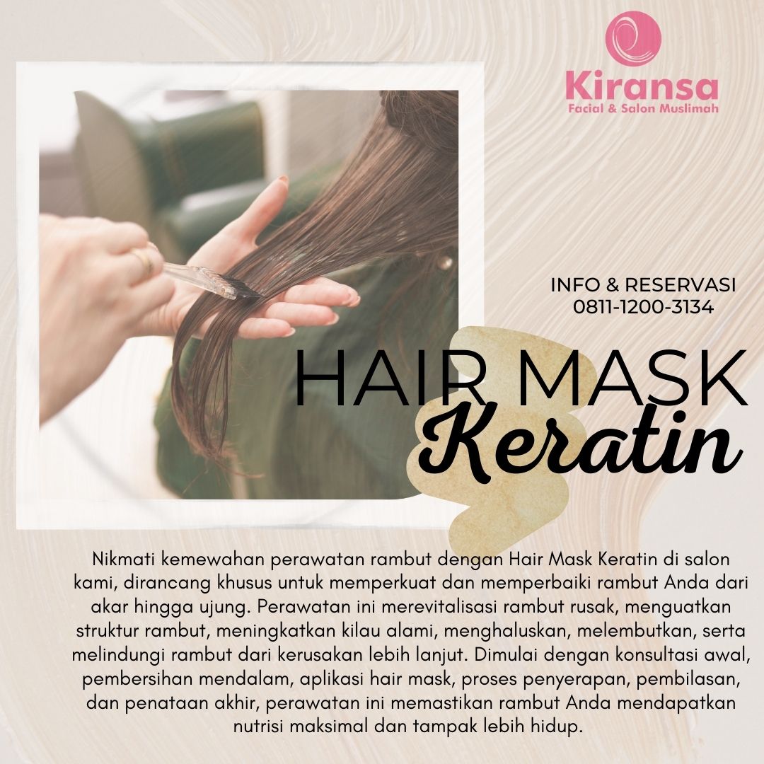 Kami menyediakan berbagai perawatan rambut untuk menunjang kesehatan dan kecantikan rambut Anda. Mulai dari gunting rambut, creambath, hair mask keratin, hair spa keratin, hempas kutu, pewarnaan halal dan smoothing keratin. Menggunakan produk yang halal dan aman serta suasana yang nyaman, Anda bisa menikmati momen perawatan yang menyegarkan untuk mendapatkan rambut sehat dan terawat.